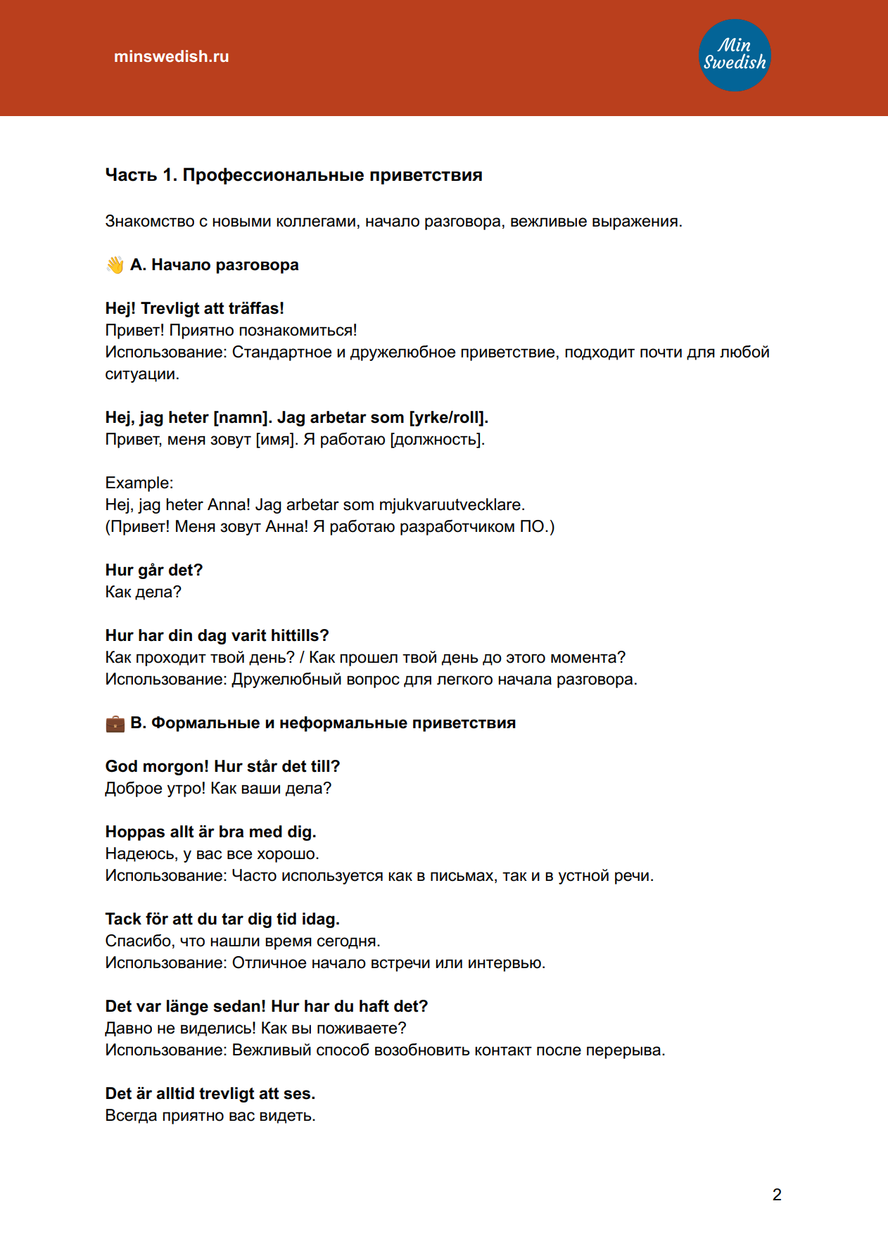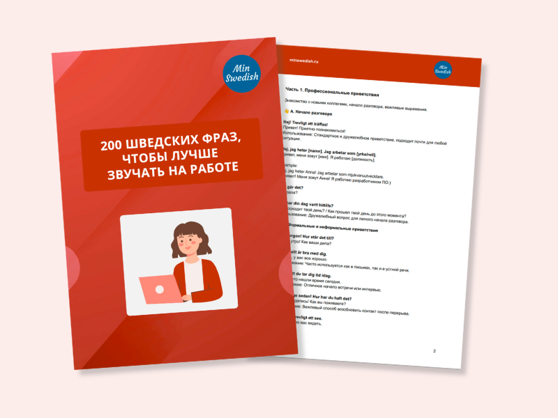 Мы собрали для вас 200 современных фраз, которые помогут вам уверенно общаться на работе в Швеции – в повседневных ситуациях, на встречах, в имейлах и на переговорах. И все это – в удобном PDF-справочнике!